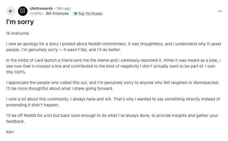 Bilt GM Responds After Reddit Comments Spark Backlash