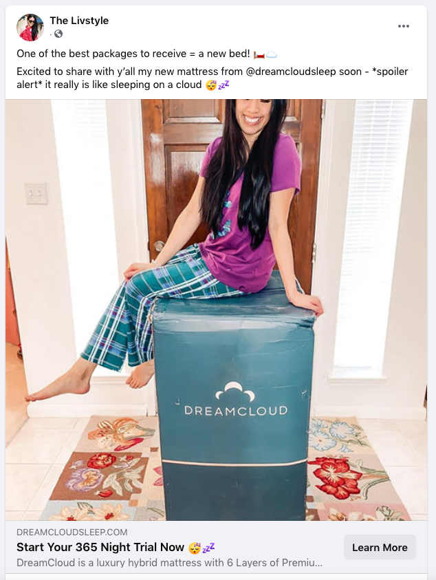 Here's another DreamCloud AD from the "influencer" The Livstyle with 221 likes.