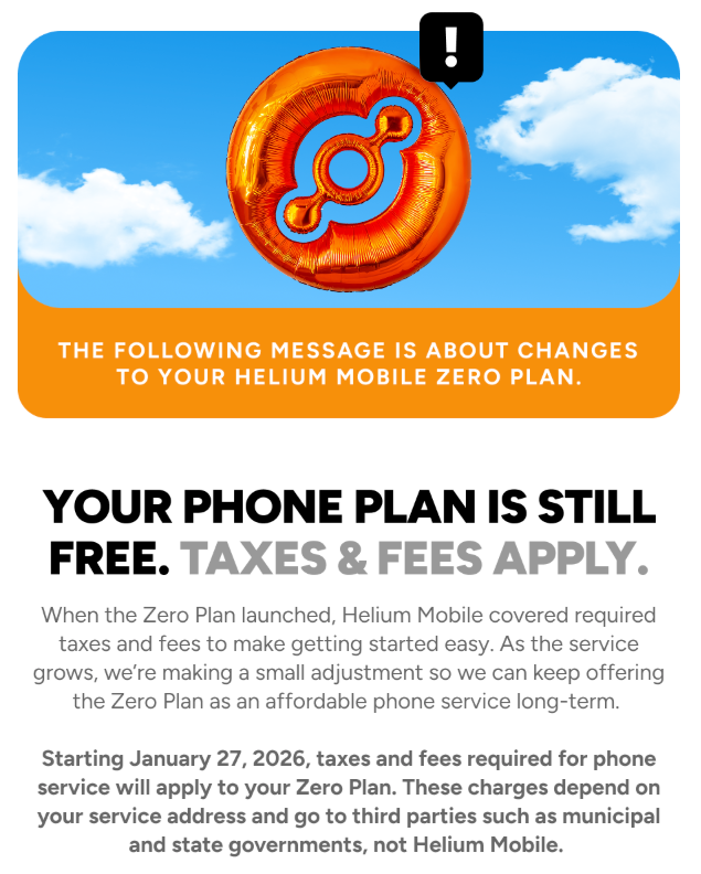 Helium Mobile’s notice effectively gives users a narrow 15-day window before the once-free Zero Plan begins transitioning into a paid service through added taxes and fees. The email went out quietly, and unless you were actively watching your inbox, or digging through Helium’s support documentation, you could very easily miss it.