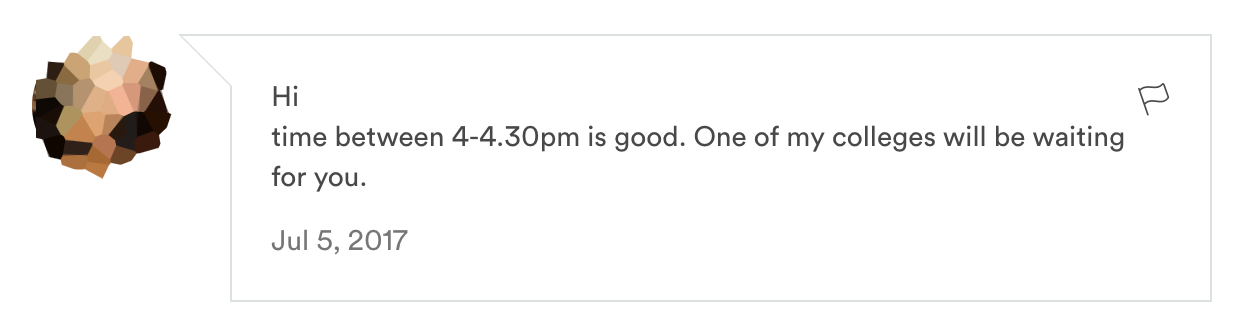 But the one noticeable characteristic is that there's always a 'friend' or 'colleague' who is going to meet you, never the person.