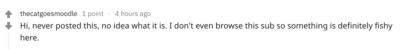 But the most annoying portion of all this, is that it would appear it was spam posted to the subreddit, shortly after it started to get downvoted, the user deleted the post, but shortly after they then commented on a redditors comment, telling them that they didn't actually post this.