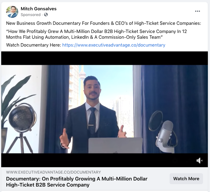 I call this, tiny man, tiny mustache, tiny Mitch. He's attempting to show off his 'big empire'. What's this set, he's standing, cheap microphone off to the size (this wouldn't be able to pick him up properly btw). Laptop ready to go in front of him. The best part is, if you click through to watch his sales pitch, I mean "documentary" you have to give up your email. Watch a doc or be harassed endlessly, what's it gonna be?