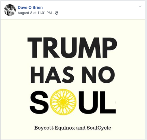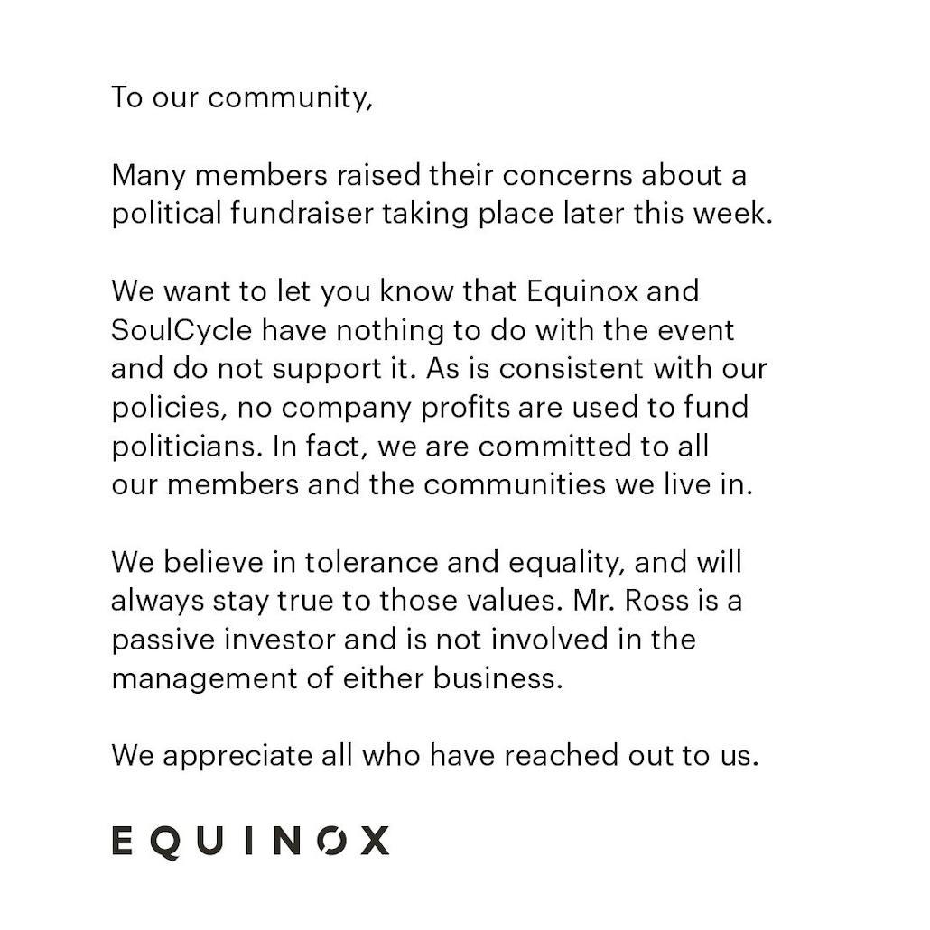 I'm sorry, are we surprised that high-end and luxury brand, Equinox Fitness & SoulCycle's is somehow connected to a Republican and Trump supporter Stephen Ross?